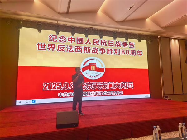 2025 年 9 月 3 日,是中國人民抗日戰爭暨世界反法西斯戰爭勝利 80 周年的重要歷史時刻。為增強全體員工的愛國情懷與民族自豪感,增強民族凝聚力,安纜股份黨支部、天長江蘇商會黨支部組織全體黨員干部集中觀看紀念中國人民抗日戰爭暨世界反法西斯戰爭勝利80周年閱兵式。
